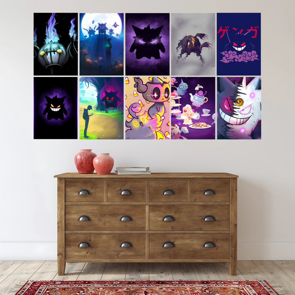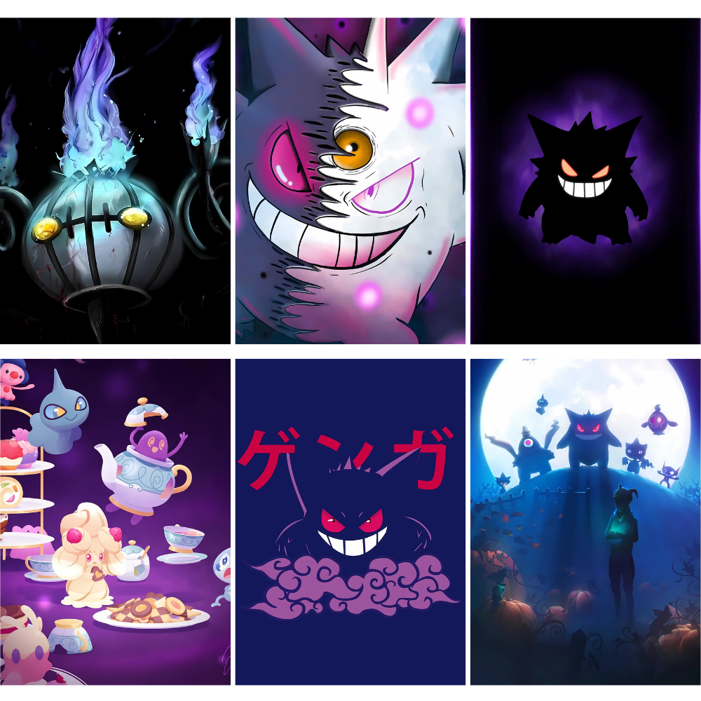 Discover spooky and stylish Ghost Pokémon posters featuring iconic characters with dark, mysterious charm, perfect for fans of the shadow side of Pokémon.