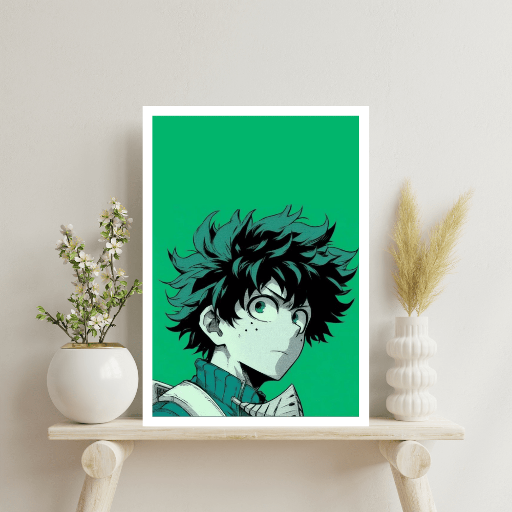 Izuku Midoriya, with his determined green eyes and tousled black hair, embodies the spirit of an aspiring hero in every frame.