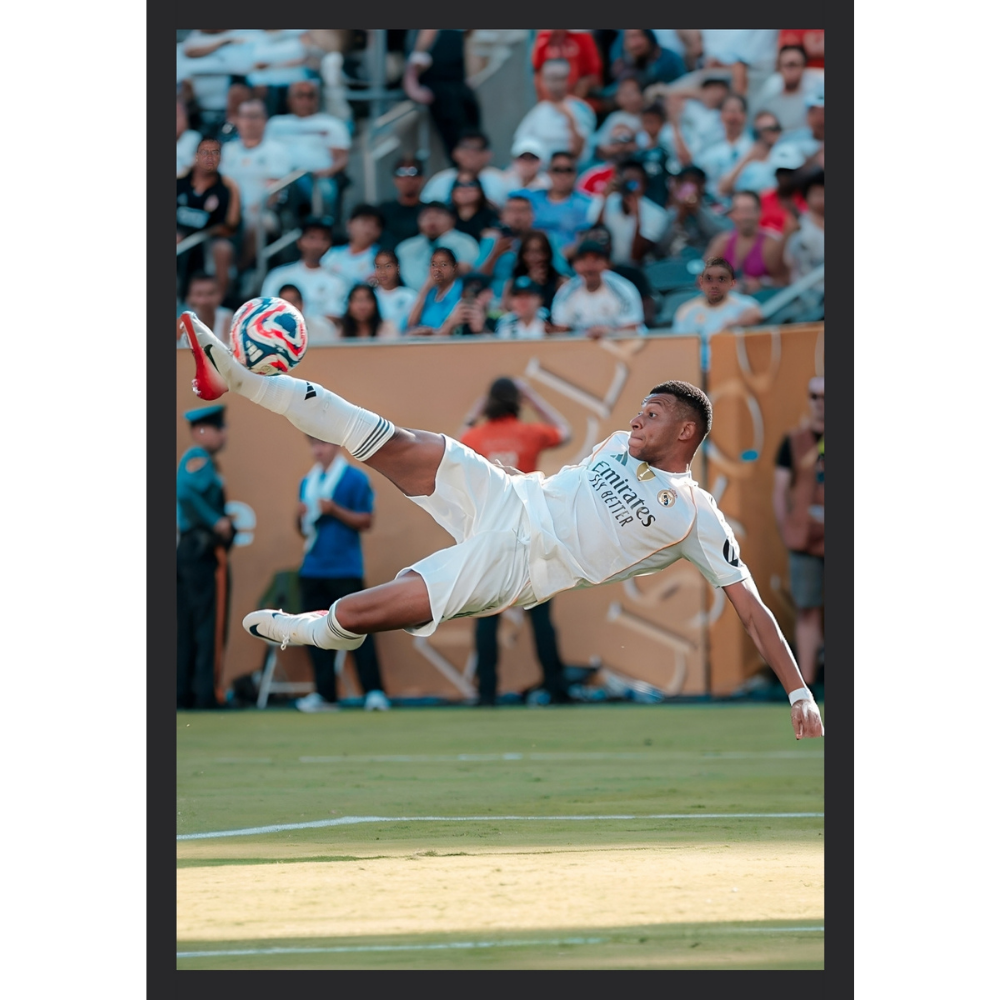 + Free ShippingShow your Madridista pride with this bold Mbappé frame. A symbol of speed, skill, and the legendary white shirt.