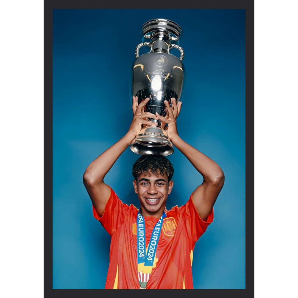 + Free ShippingCelebrate Lamine Yamal’s historic Euro 2024 triumph with Spain through a premium framed artwork capturing his iconic championship moment.