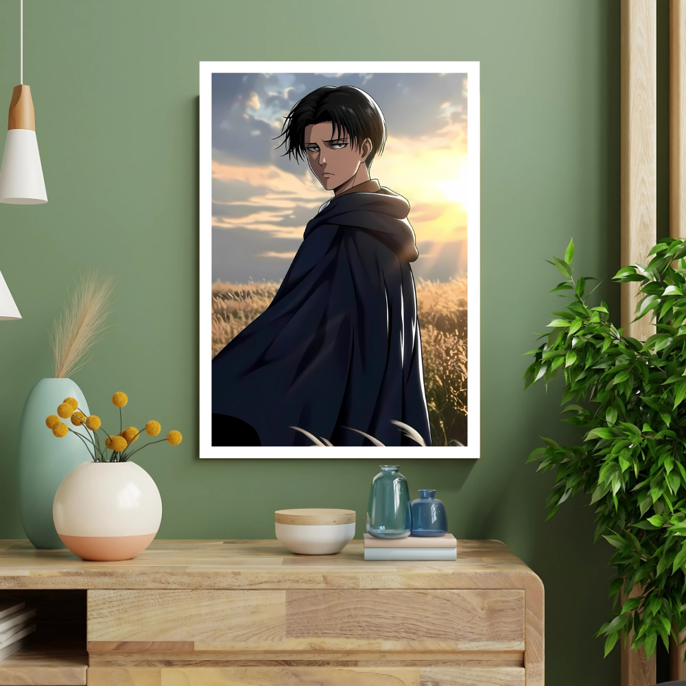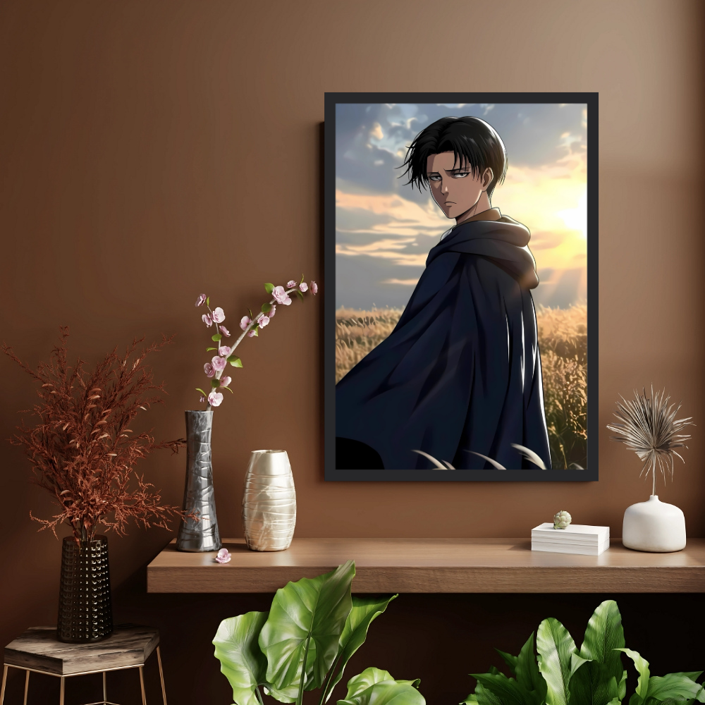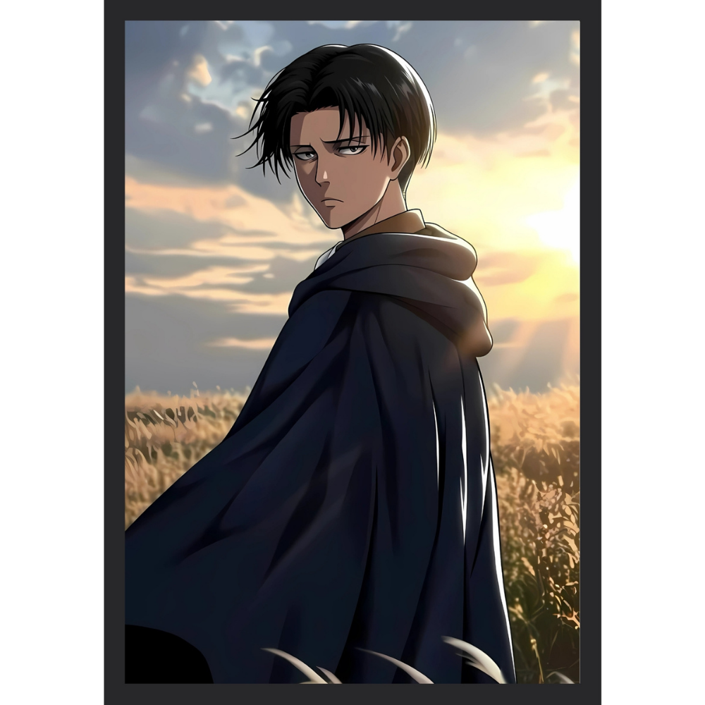 + Free ShippingLevi looks back over his shoulder, wearing a dark hooded cape in a golden field under a bright, late-afternoon sun.