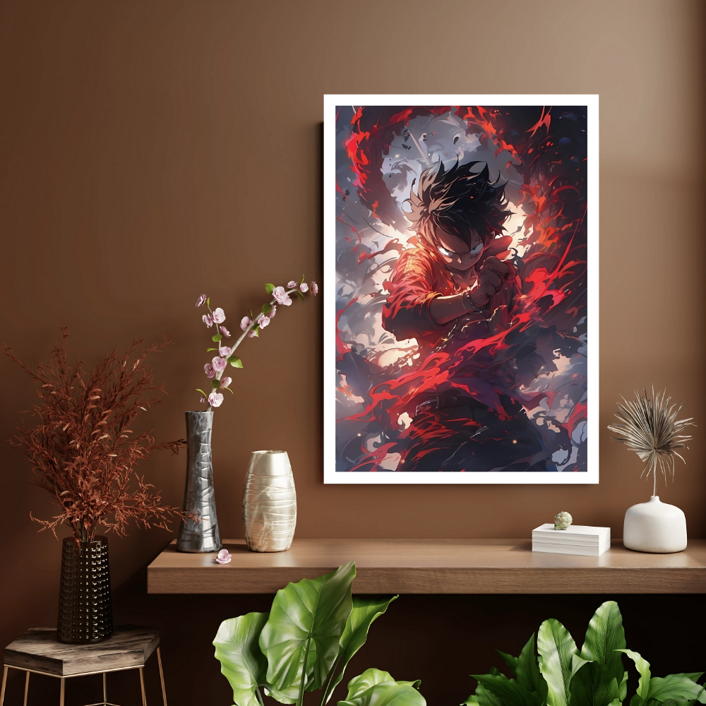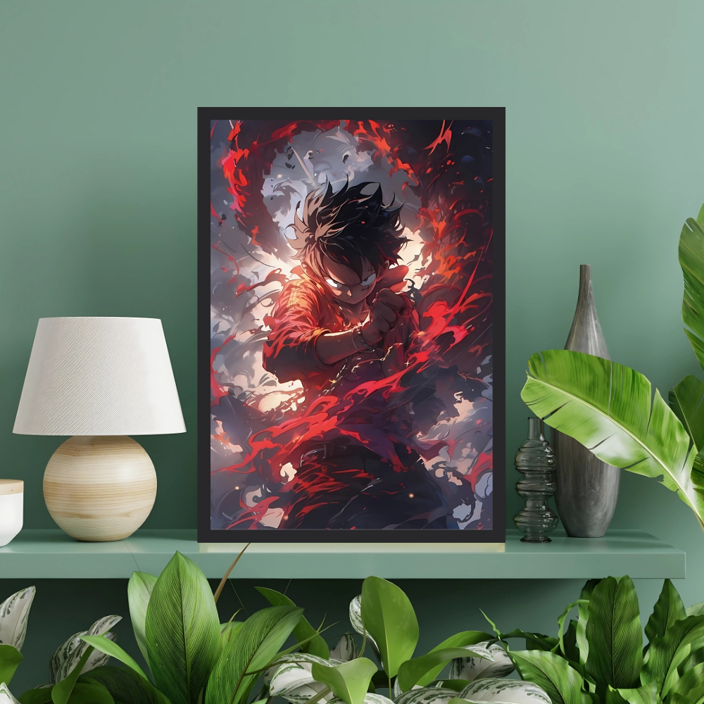 + Free ShippingAn intense artistic image of Monkey D. Luffy surrounded by swirling red and dark elemental power.